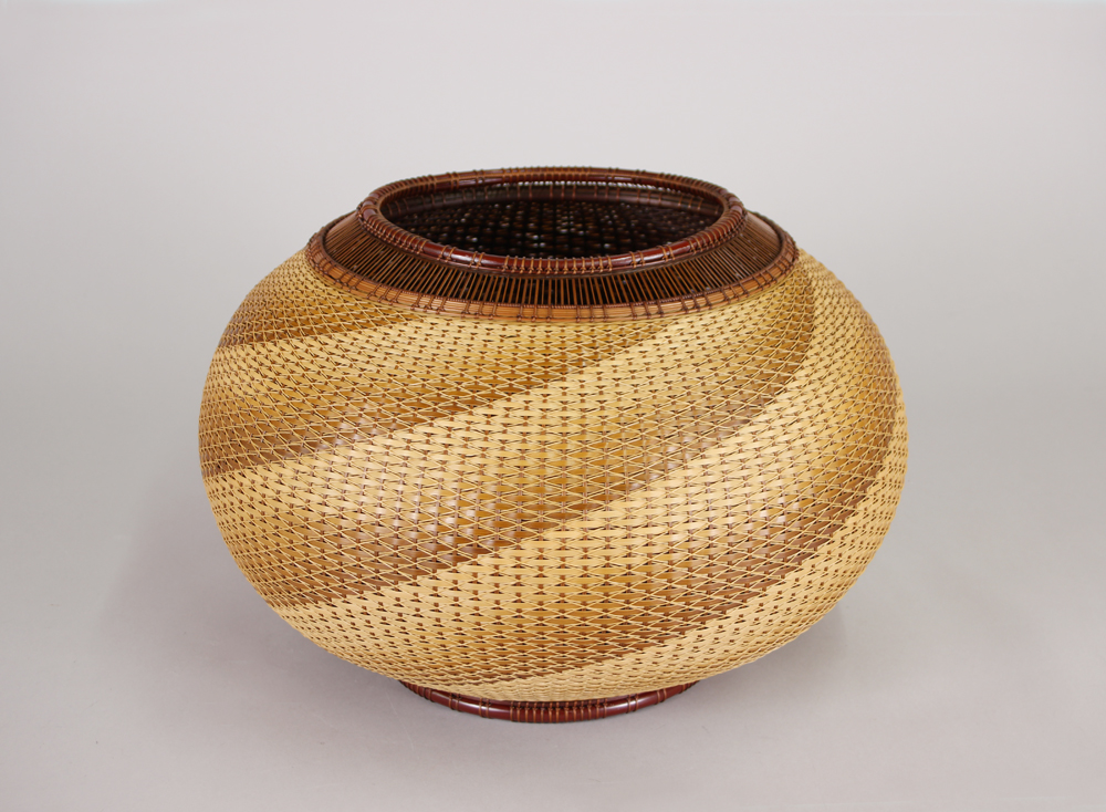 ![]() | Корзина с переплетающимися полосками и округлой формой |